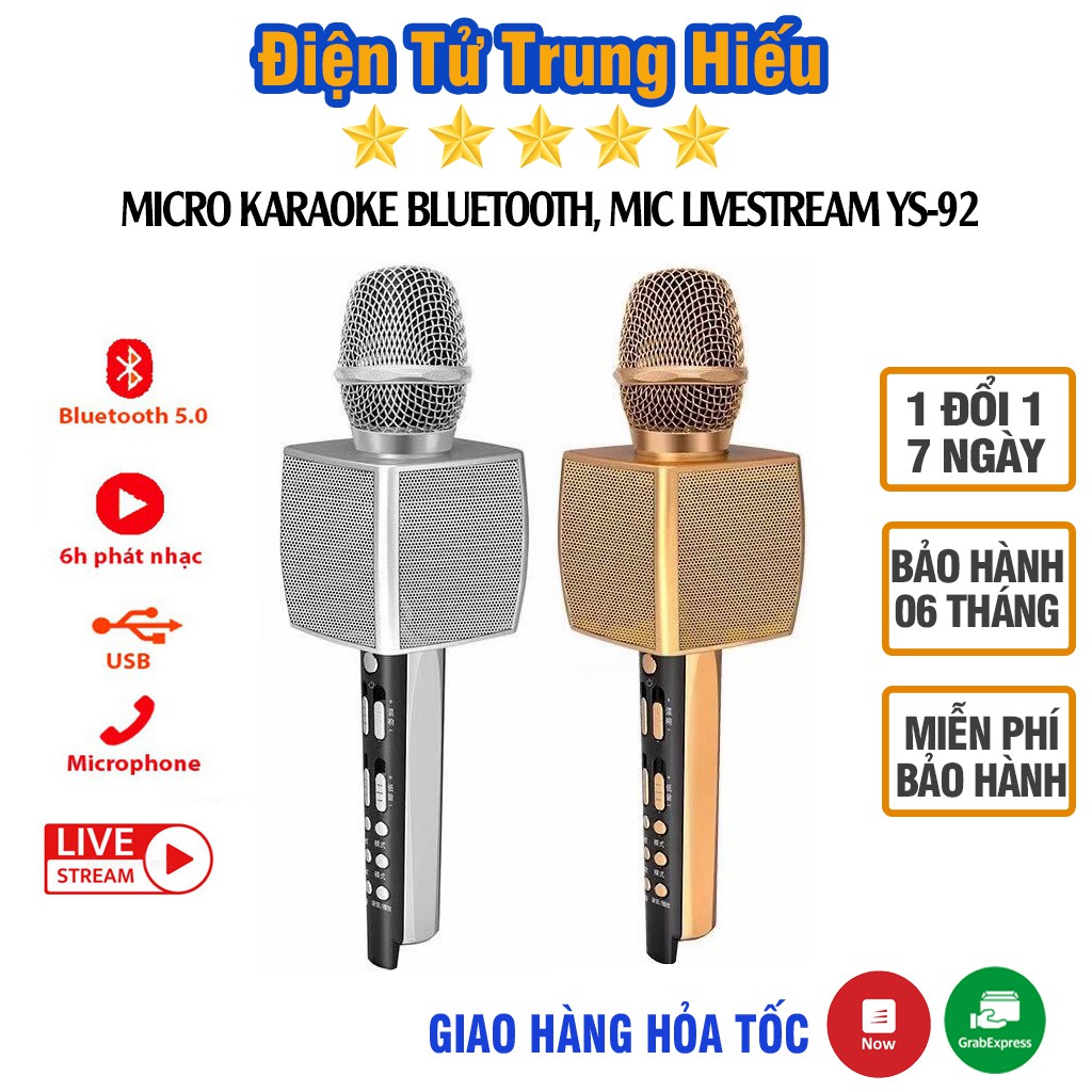 [Mã ELHACE giảm 4% đơn 300K] Micro Karaoke Bluetooth YS-92 Không Dây Mic Livestream Kết Nối Không Dây Hỗ Trợ Ghi Âm