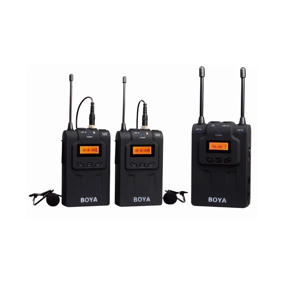 Bộ Micro BOYA BY- WM8 này gồm 2 bộ phát (Transmitter) và 1 bộ nhân (Receiver) với số kênh lên tới 48 kênh nên bạn sẽ không lo bị trùng kênh với các thiết bị khác được sử dụng cùng lúc.