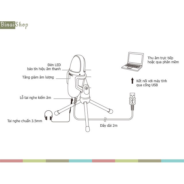 - Micro thu âm cho máy tính Audio Technica AT9934USB có màng thu 16mm và độ phân giải kỹ thuật số 16bit / 48kHz.