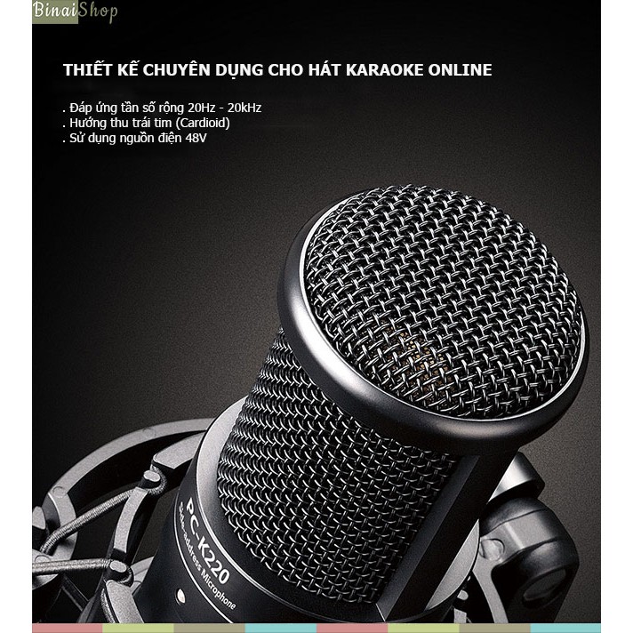 - Micro Takstar PC-K220 là micro condenser sử dụng nguồn phantom 48v