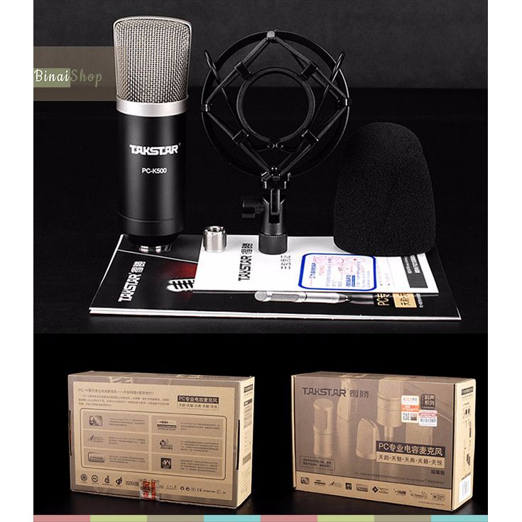Takstar PC-K500 (mic) là bộ sản phẩm rút gọn bao gồm micro, và shockmount. Khách hàng cần phải có Soundcard (cấp nguồn 48V) hoặc các thiết bị cấp nguồn 48V mới sử dụng được.