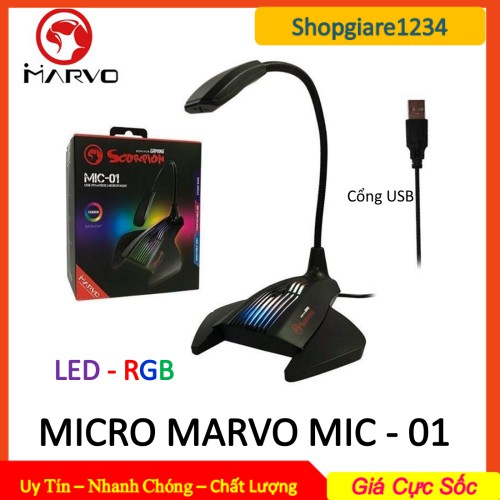 Giới thiệu [Mã ELHACE giảm 4% đơn 300K] Micro Máy Tính MARVO MIC 01 - ĐÈN LED RGB - Kết Nối Cổng USB. Hàng Chính Hãng, Full Box