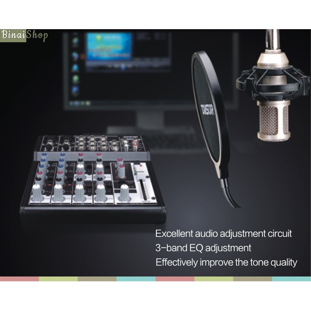 - Trang bị mạch DSP Built-in với 100 hiệu ứng hỗ trợ hát karaoke, thu âm, phát biểu, hội trường...