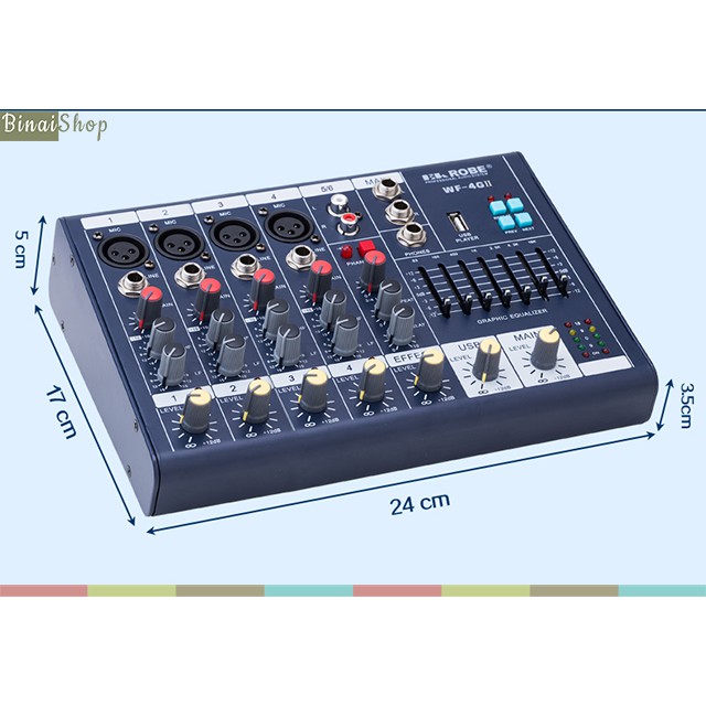 - Mixer mini EH ROBE WF-6G hỗ trợ nguồn phantom 48V