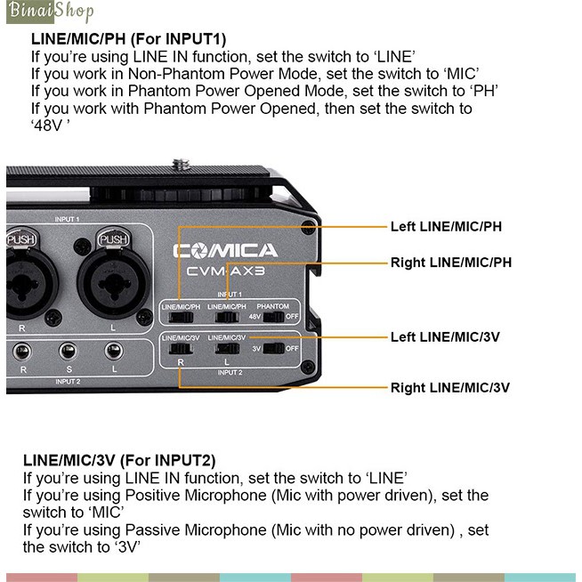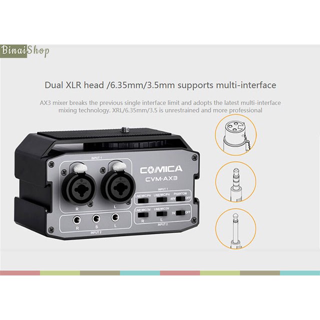 Giới thiệu [Mã ELHACE giảm 4% đơn 300K] Mixer nguồn 48v cho máy ảnh, máy quay Comica CVM-AX3