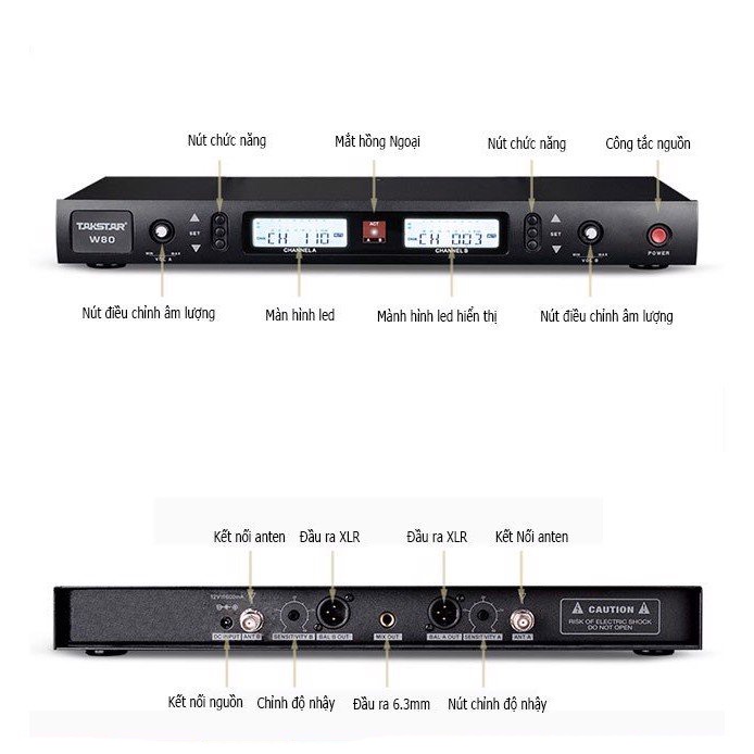 - Micro không dây Takstar W80 sử dụng kỹ thuật khóa tần số D-PLL RF cho tần số chính xác và hiệu suất ổn định.