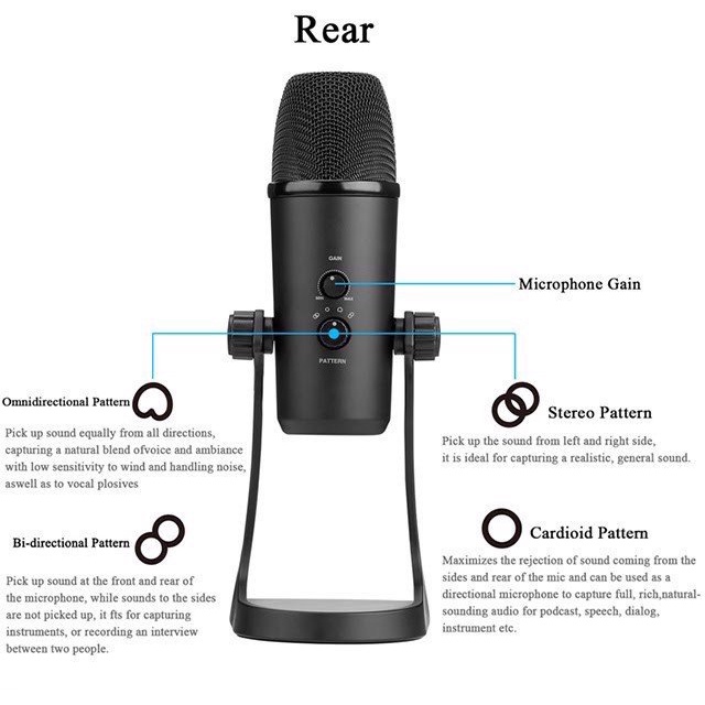 - Cấu tạo màng thu đặc biệt với các hướng thu có thể thay đổi: Stereo, cardioid, omnidirectional và bi-directional.