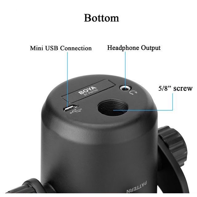 - Đáy mic có lỗ ren xoáy chuẩn 1/4", tương thích với các loại chân đế micro thông dụng.