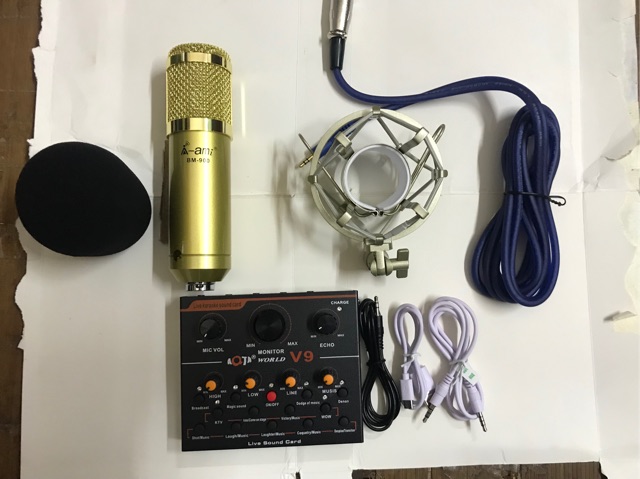 Giới thiệu [Mã ELHACE giảm 4% đơn 300K] [Freeship toàn quốc từ 50k] COMBO bộ thu âm sound v9 Mic thu âm Ami bm900 full phụ kiện