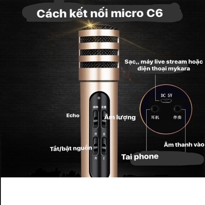 Thiết Bị Âm Thanh > Micro thu âm || [Mã ELHACE giảm 4% đơn 300K] [Freeship toàn quốc từ 50k] Micro Karaoke Livestream C6 tặng kèm tai nghe j5Còn hàng