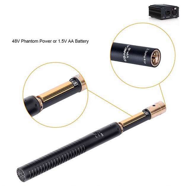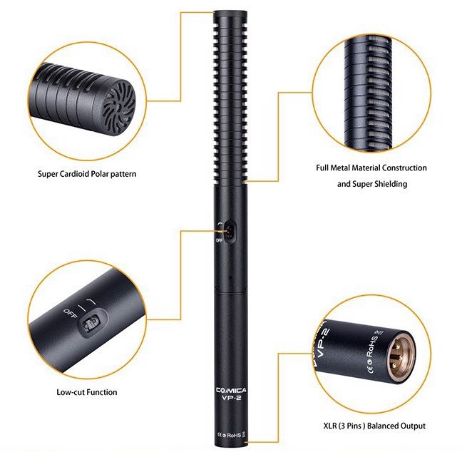 - Micro Comica CVM-VP2 là micro condenser có hướng thu supercardioid, cho khả năng thu âm định hướng tuyệt đối, loại bỏ hầu hết các tạp âm ở phía sau mic