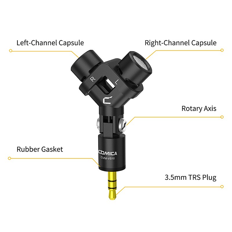 Comica CVM-VS10 là dạng micro XY Stereo với cặp mic kép được thiết kế đặc biệt cho GOPRO, Camera hoặc máy ảnh DSLR. CVM-VS10 có màng thu mạ vàng, lớp vỏ hợp kim không rỉ chống nhiễu và shockmount built-in, mang đến âm thanh trung thực, trong và rõ.