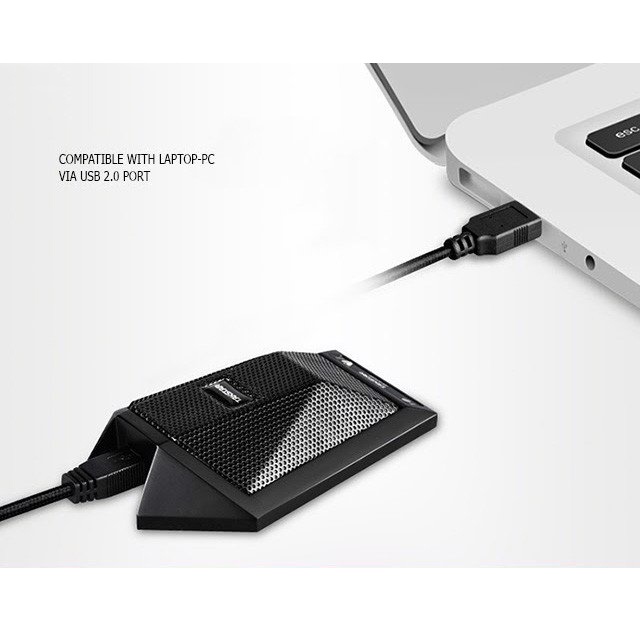 - Micro với hướng thu Cardioid với độ nhạy cao và tần số đáp ứng tập trung vào giọng nói, khoảng cách thu âm đạt từ 3-5m, định vị chuẩn, âm thanh rõ ràng, sắc nét hơn.