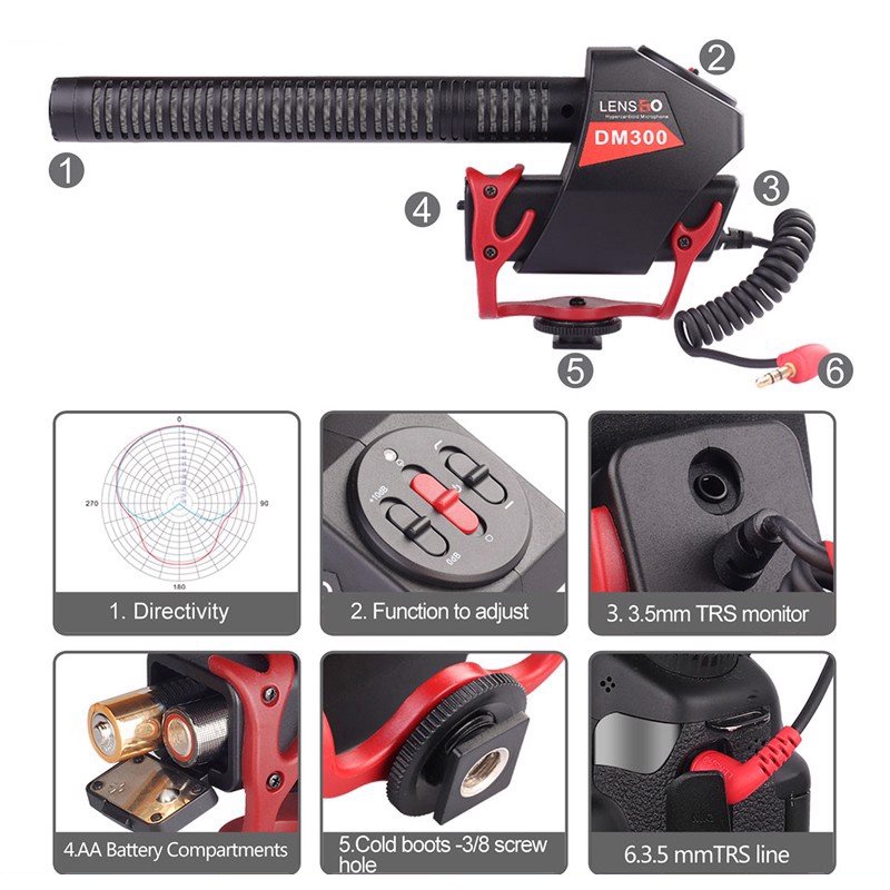 Giới thiệu [Mã ELHACE giảm 4% đơn 300K] Micro Shotgun Thu Âm Định Hướng Cho Máy Ảnh, Máy Quay Lensgo LYM-DM300