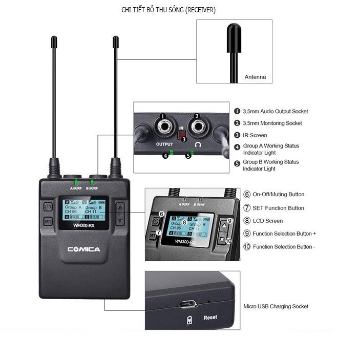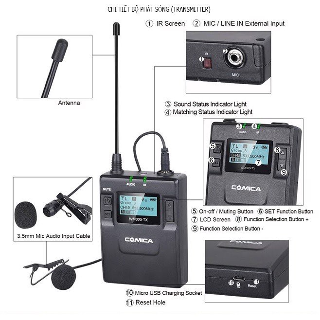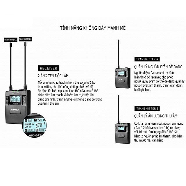 Giới thiệu [Mã ELHACE giảm 4% đơn 300K] Micro Không Dây UHF Cho Máy Ảnh Comica CVM-WM300 (A) - Hàng Chính Hãng