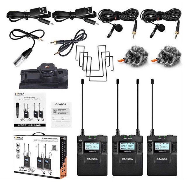 - 01 Bộ Micro máy quay Comica CVM-WM300A (2 Transmitter, 1 Receiver).