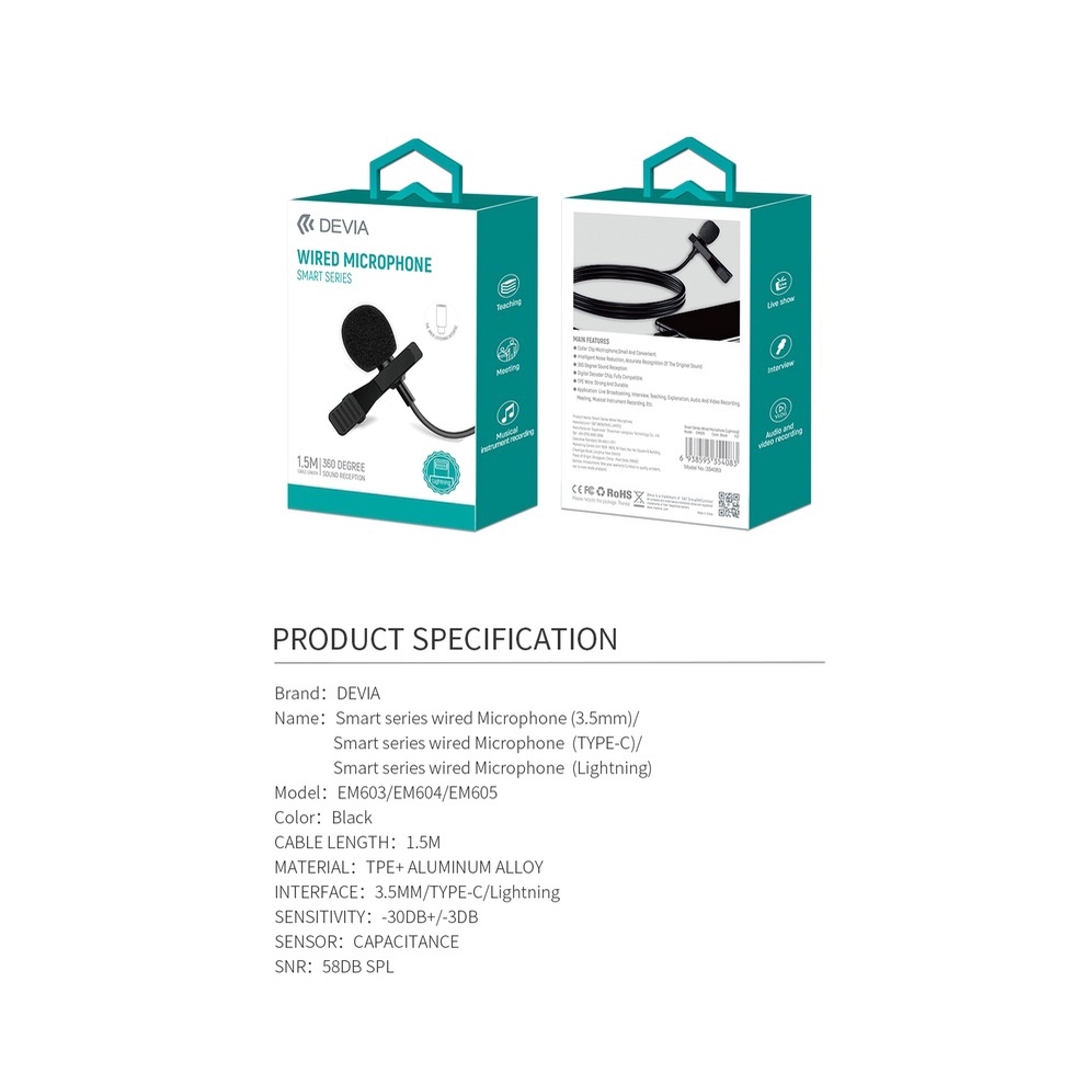 Giới thiệu [Mã ELHACE giảm 4% đơn 300K] Micro Thu âm Live stream chân TypeC có dây DEVIA EM604 - iAll Store