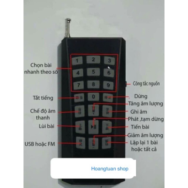 Thông số sản phẩm;- điều khiển mới 100% bóc máy pin sẵn dùng cho loa trợ giảng bẫy chim E898 hoặc E76 ( loa không có bluetooth mới dùng được khiển này)