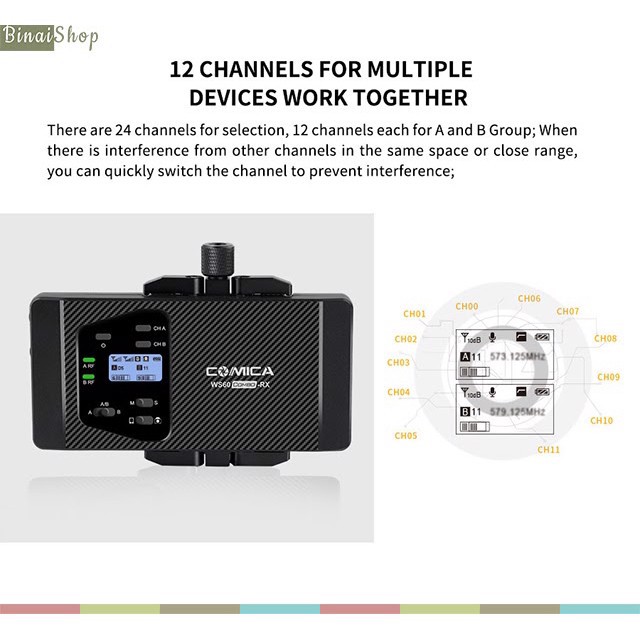 Thiết Bị Âm Thanh > Micro thu âm || [Mã ELHACE giảm 4% đơn 300K] Comica CVM-WS60 - Cặp Micro Cài Áo Không DâyCòn hàng