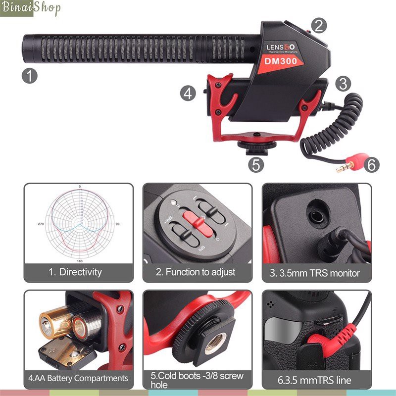 Giới thiệu [Mã ELHACE giảm 4% đơn 300K] Lensgo LYM-DM300 - Micro Shotgun Thu Âm Định Hướng Cho Máy Ảnh, Máy Quay