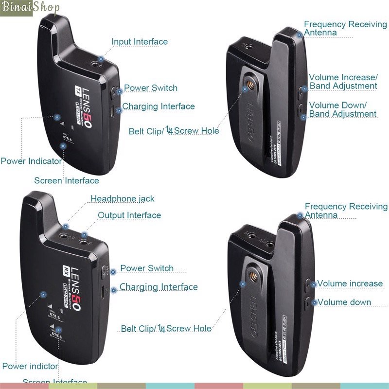 - Có hai phiên bản: Lensgo LWM-308C Single (1 receiver, 1 transmitter) và Lensgo LWM-308C Double (1 receiver, 2 transmitter).