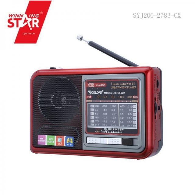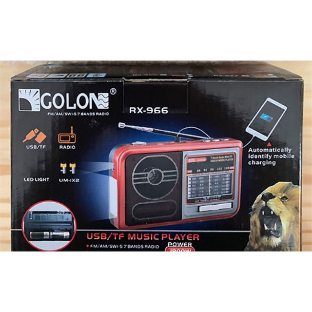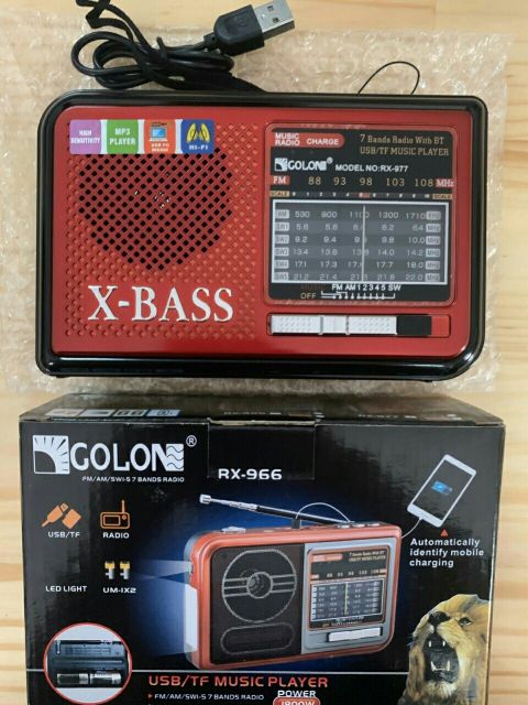 Radio Golon RX-966 7 band, kiểu dáng đẹp, bắt sóng tốt, nghe được nhiều đài với âm thanh to và rõ ràng. Ngoài nghe các chương trình phát thanh ra thì máy còn nghe được nhạc mp3 được chép sẵn trong USB và thẻ SD.