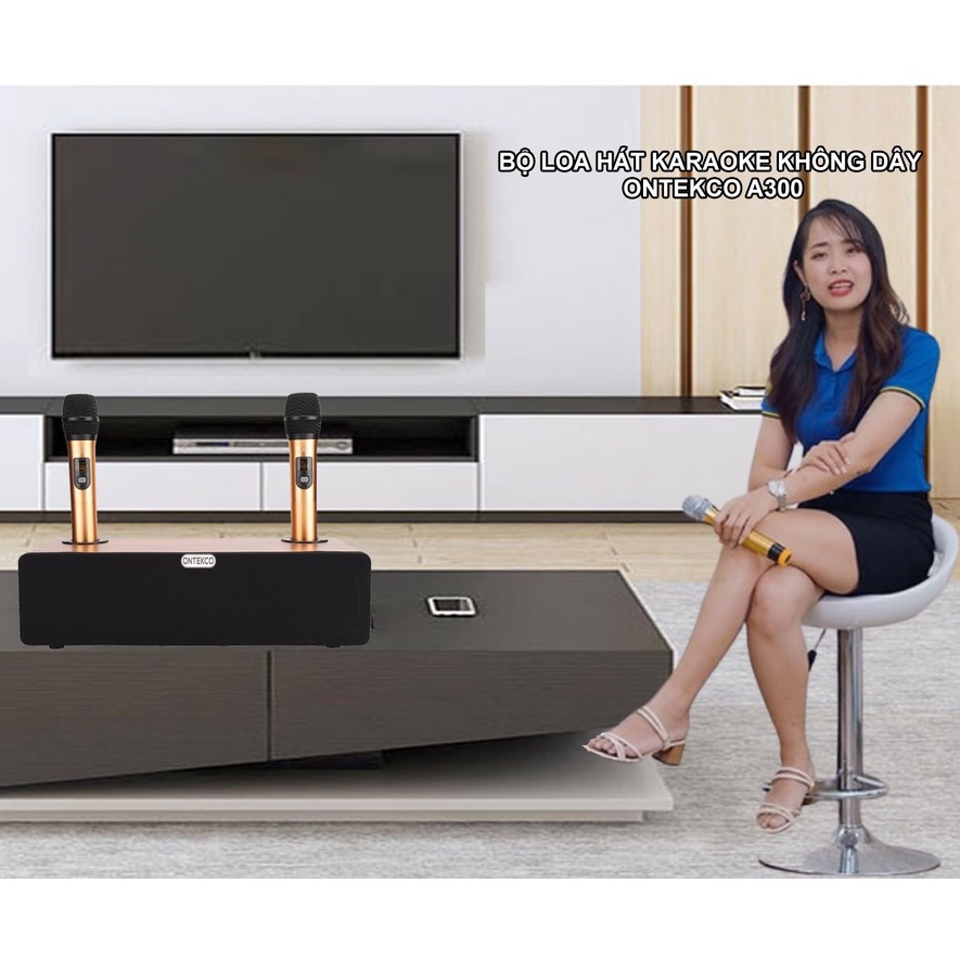 Bộ âm thanh Ontekco A300 hát karaoke gia đình siêu vipBộ âm thanh karaoke di động Ontekco A300 kèm 2 micro không dây.