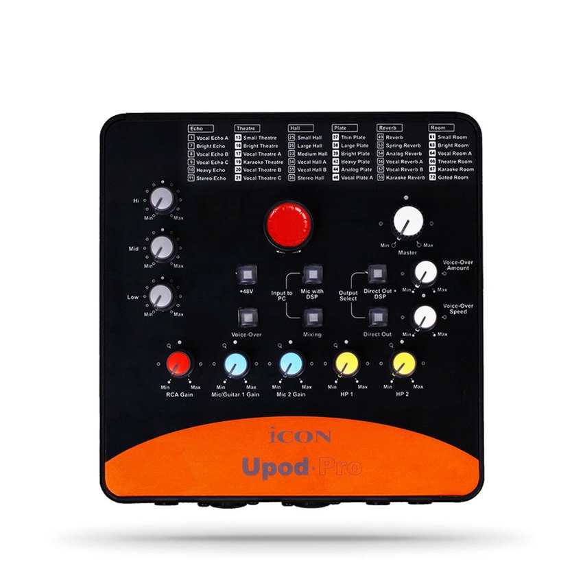 Sound card USB ICON Upod Pro tối ưu âm thanh chất lượng cao 16bit/48kHz, cung cấp 72 hiệu ứng âm thanh kỹ thuật số, phục vụ tốt cho nhu cầu thu âm online, hát karaoke trên máy tính hay hát karaoke online.Bảo hành: 12 tháng Kho hàng: Còn