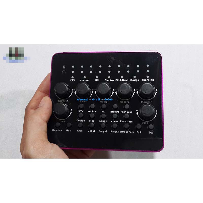 Soundcard hát live V10 được tích hợp nhiều hiệu ứng âm thanh, tiếng vỗ tiếng nhạc cỗ vũ, tiếng hò reo,… làm méo giọng. Với núm xoay tròn đã có thể giúp người sử dụng dễ dàng tăng giảm Treb, Bass, Echo của giọng hát của mình. Điều đó sẽ đem lại cho người sử dụng những giây phút thư giãn, những bản thu âm chân thực nhất.
