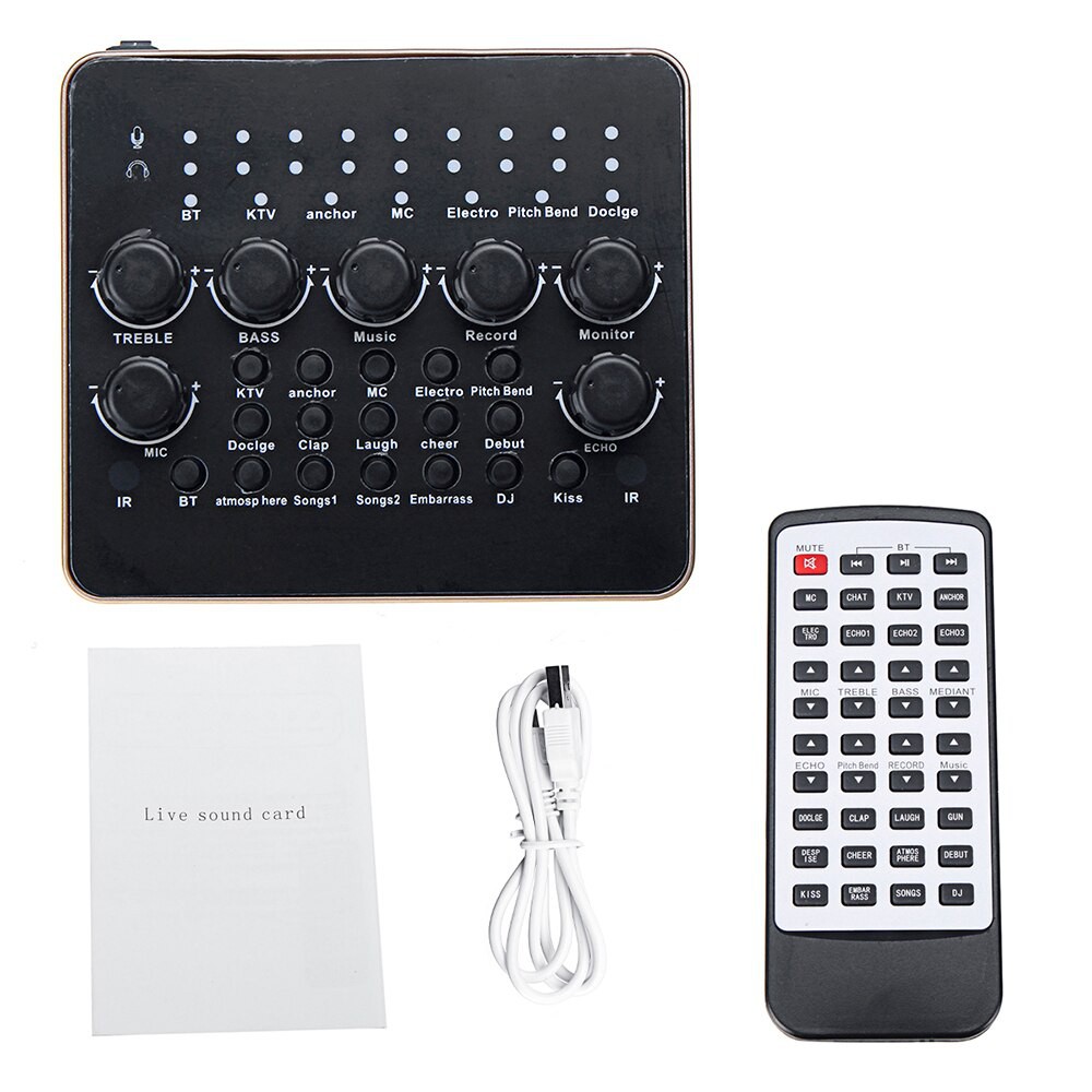 Đặc biệt Soundcard V10 được trang bị pin dung lượng 1000mah có thể sử dụng mọi lúc mọi nơi, và chiếc remote điều khiển từ xa với nhiều hiệu ứng âm thanh, tinh chỉnh trực tiếp ở trên ngay chiếc điều kiển từ xa này, giúp mọi người có thể sử dụng trên tiếp trên điều khiển mà không cần phải với tới hay như động chạm lên trực tiếp chiếc Soundcard V10.