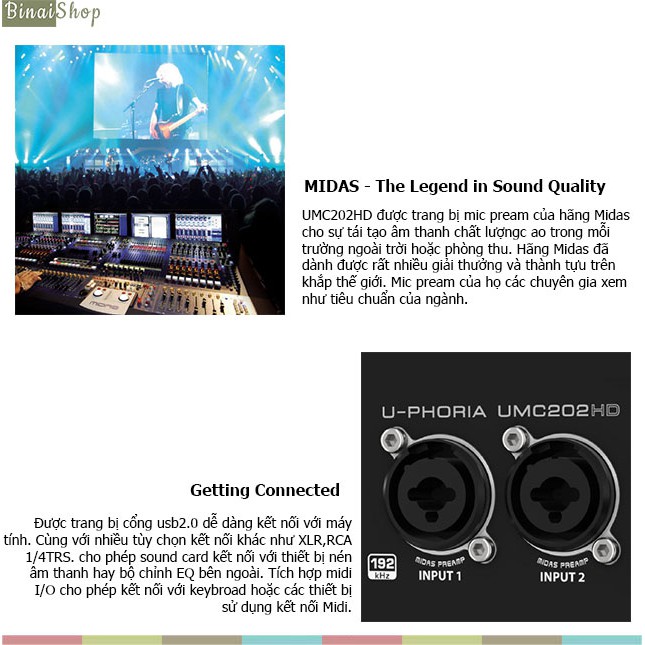 Giới thiệu [Mã ELHACE giảm 4% đơn 300K] Sound card thu âm Behringer U-PHORIA UMC202HD