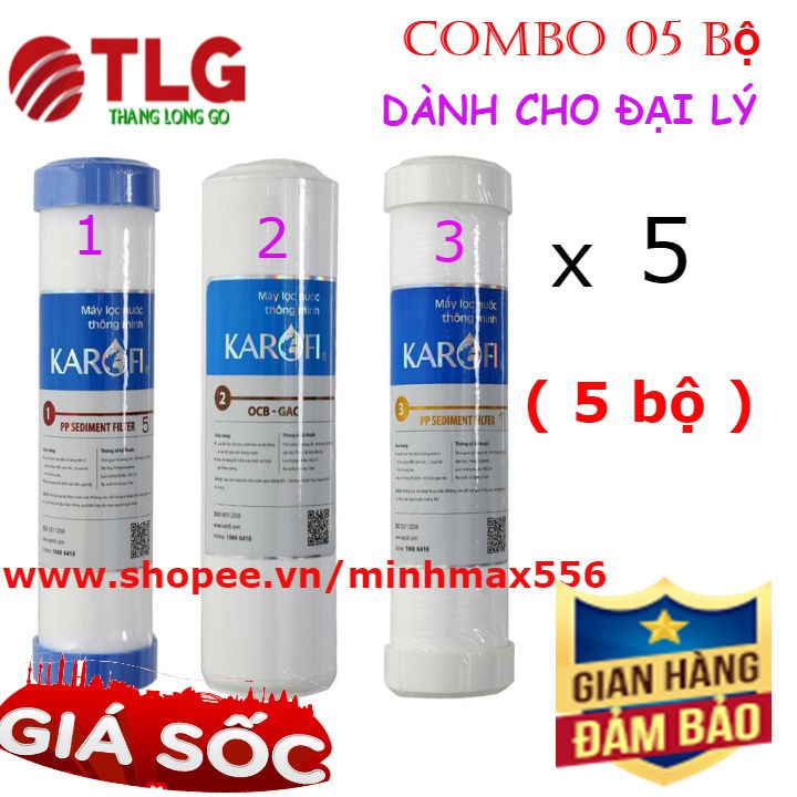[UY TÍN SỐ 1] Combo 05 Bộ 3 lõi lọc số 1-2-3 Karofi Chính Hãng | Giá tốt dành cho Đại LýTHANGLONGGO CAM KẾT SP BÁN RA LÀ CHÍNH HÃNG