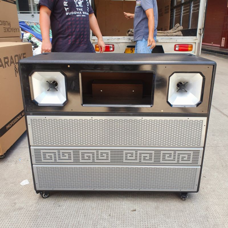 Vỏ loa kéo bình 4 tấc đôi, gỗ MDF chống ẩm15li, sơn sần chống trầy, vỏ thùng đầy đủ họng treble, lưới loa, bánh xe, bát bắt bình.Cắt mạch theo kích thước yêu cầu.