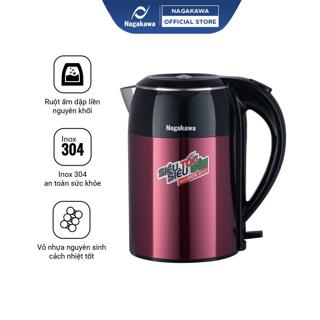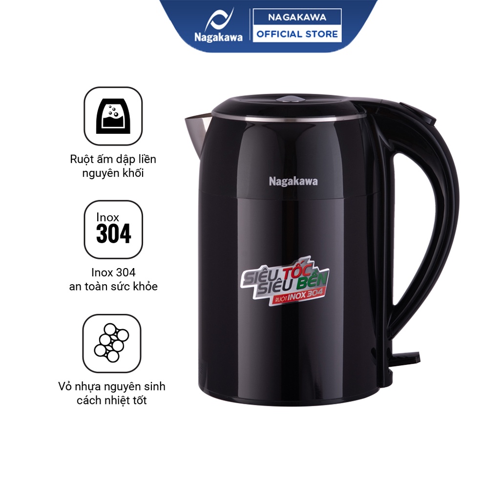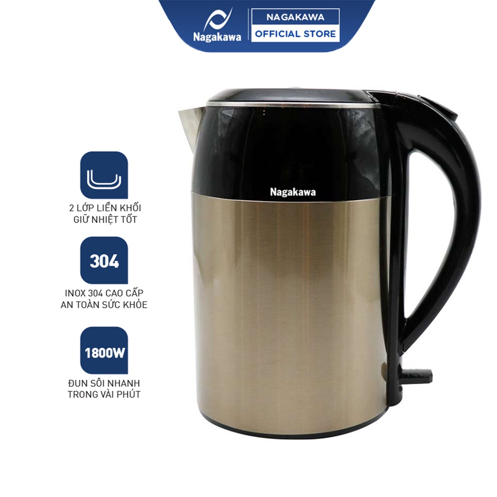 Giới thiệu [Mã ELHADEV giảm 4% đơn 300K] Ấm siêu tốc 1,8L Nagakawa NAG0315 - 2 lớp - Công suất 1800W