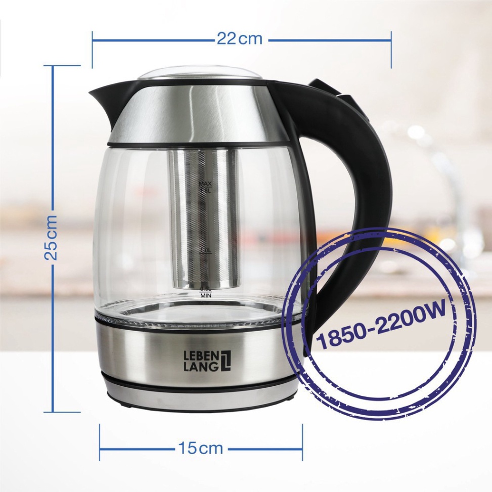 Ấm siêu tốc bình siêu tốc thủy tinh LEBENLANG từ Đức bảo hành 2 năm- Phân loại : LBL2879 - 1.7L - không lõi lọc trà