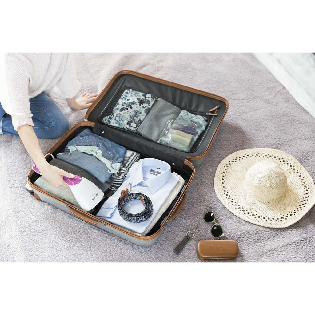 Kiểu dáng cầm tay gọn nhẹ, thuận tiện hơn khi ủi thẳng các nếp gấp nhờ luồng hơi nước liên tục mà không cần cầu ủi.