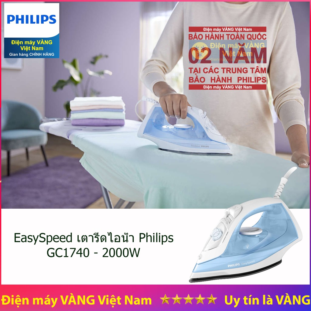 Thiết Bị Điện Gia Dụng > Thiết bị điện gia dụng nhỏ > Bàn là khô & Hơi nước || [Mã ELHADEV giảm 4% đơn 300K] Bàn ủi hơi nước Philips GC1740 hãng phân phốiCòn hàng