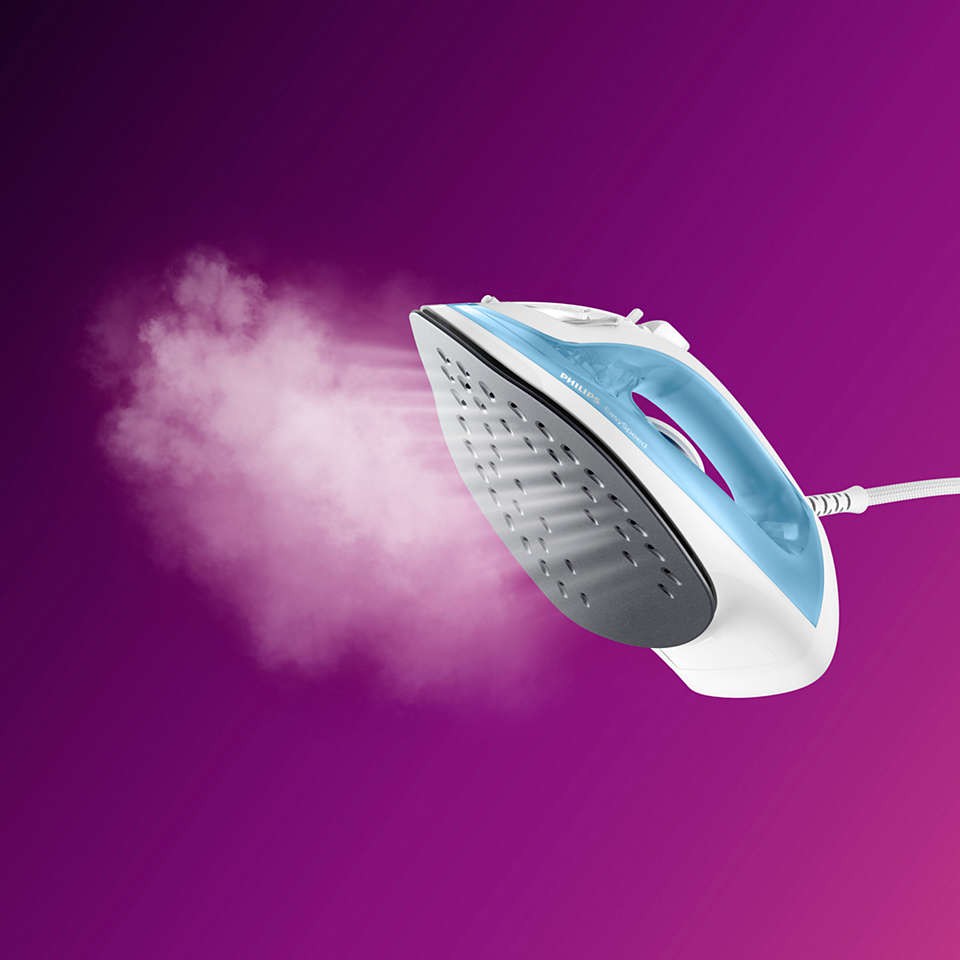 Bàn ủi EasySpeed cung cấp nhiều chế độ hơi phun khác nhau để ủi phẳng những nếp nhăn khó ủi trên quần áo. Mặt đế chống dính để trượt dễ dàng trên mọi loại vải. Ngoài ra, bàn ủi còn có chức năng Calc Clean đảm bảo hiệu suất ủi lâu bền, giúp công việc ủi quần áo mỗi ngày của bạn trở nên dễ dàng và hiệu quả hơn.Số lần châm nước ít hơn với ngăn chứa nước lớn 220 ml giúp ủi nhiều quần áo hơn trong một lần châm.