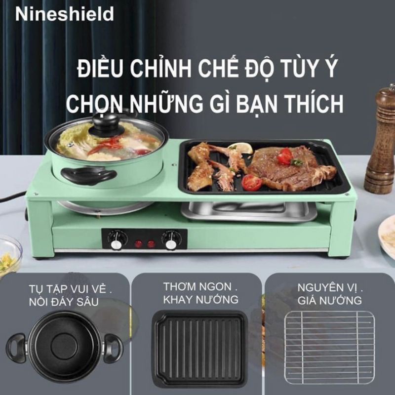 Giới thiệu [Mã ELHADEV giảm 4% đơn 300K] Bếp Lẩu Nướng 2 Ngăn Chữ Nhật NINESHIELD 2 In 1 Vừa Lẩu Vừa Nướng