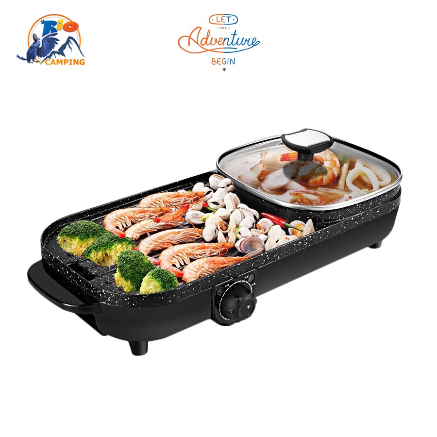 Giới thiệu [Mã ELHADEV giảm 4% đơn 300K] Bếp lẩu nướng 2in1 Bếp lẩu nướng điện đa năng không khói tiện dụng BH 12 tháng