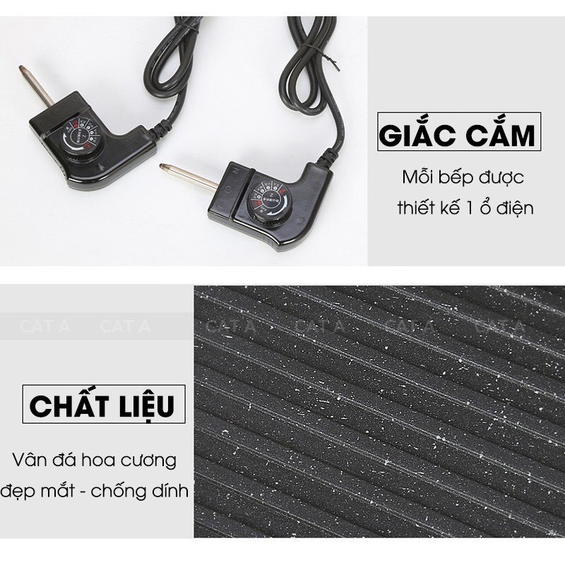 -Nút điều chỉnh nhiệt tiện lợi, cho phép bạn tùy chỉnh mức nhiệt độ cung cấp cho món ăn mọi lúc theo mong muốn để những món nướng được vàng đều hai mặt, thơm ngon và nồi lẩu vẫn được nóng hổi, hấp dẫn; Dây nguồn rời tiện lợi, có thể tăng giảm nhiệt độ theo yêu cầu sử dụng.