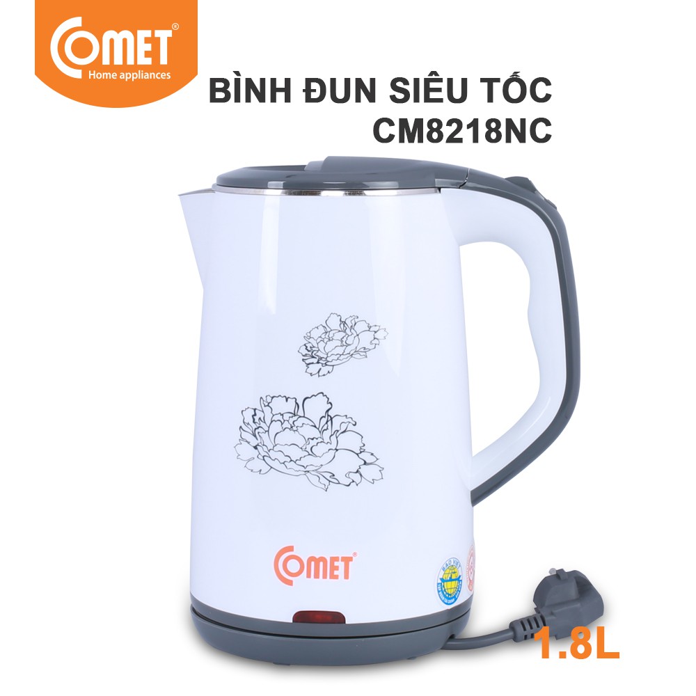 Thiết Bị Điện Gia Dụng > Đồ gia dụng nhà bếp > Ấm đun siêu tốc || [Mã ELHADEV giảm 4% đơn 300K] Bình đun siêu tốc inox 304 1.8L Comet CM8218NCòn hàng