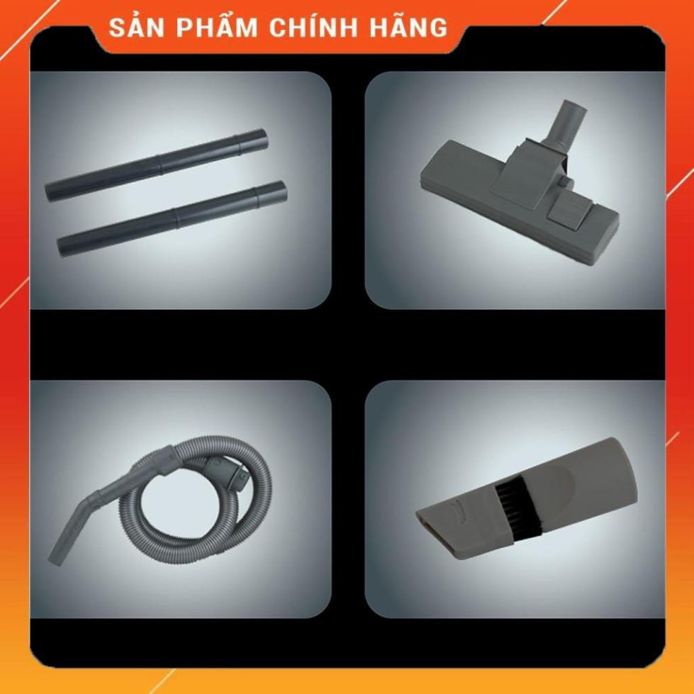 Phụ kiện đi kèm: ống hút, ống kéo dài, màng lọc hộp bụi, chổi hút, bàn hút