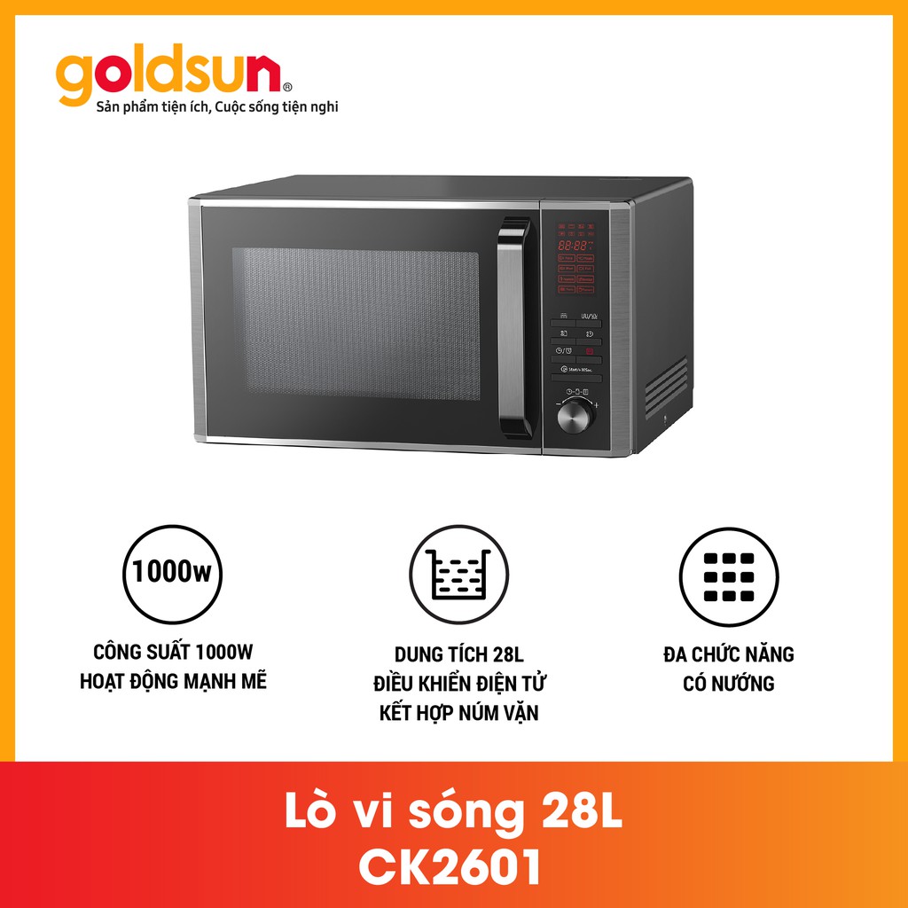 Thiết Bị Điện Gia Dụng > Đồ gia dụng nhà bếp > Lò vi sóng || [Mã ELHADEV giảm 4% đơn 300K] Lò vi sóng GOLDSUN CK2601 - Điện tử 28LCòn hàng
