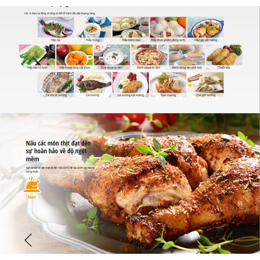 - Hấp đối lưu: Chức năng hấp đối lưu cho phép bạn tùy chỉnh nhiệt độ từ 190 - 200 độ giúp thực phẩm có vỏ ngoài giòn, thơm nhưng bên trong vẫn chín mềm.