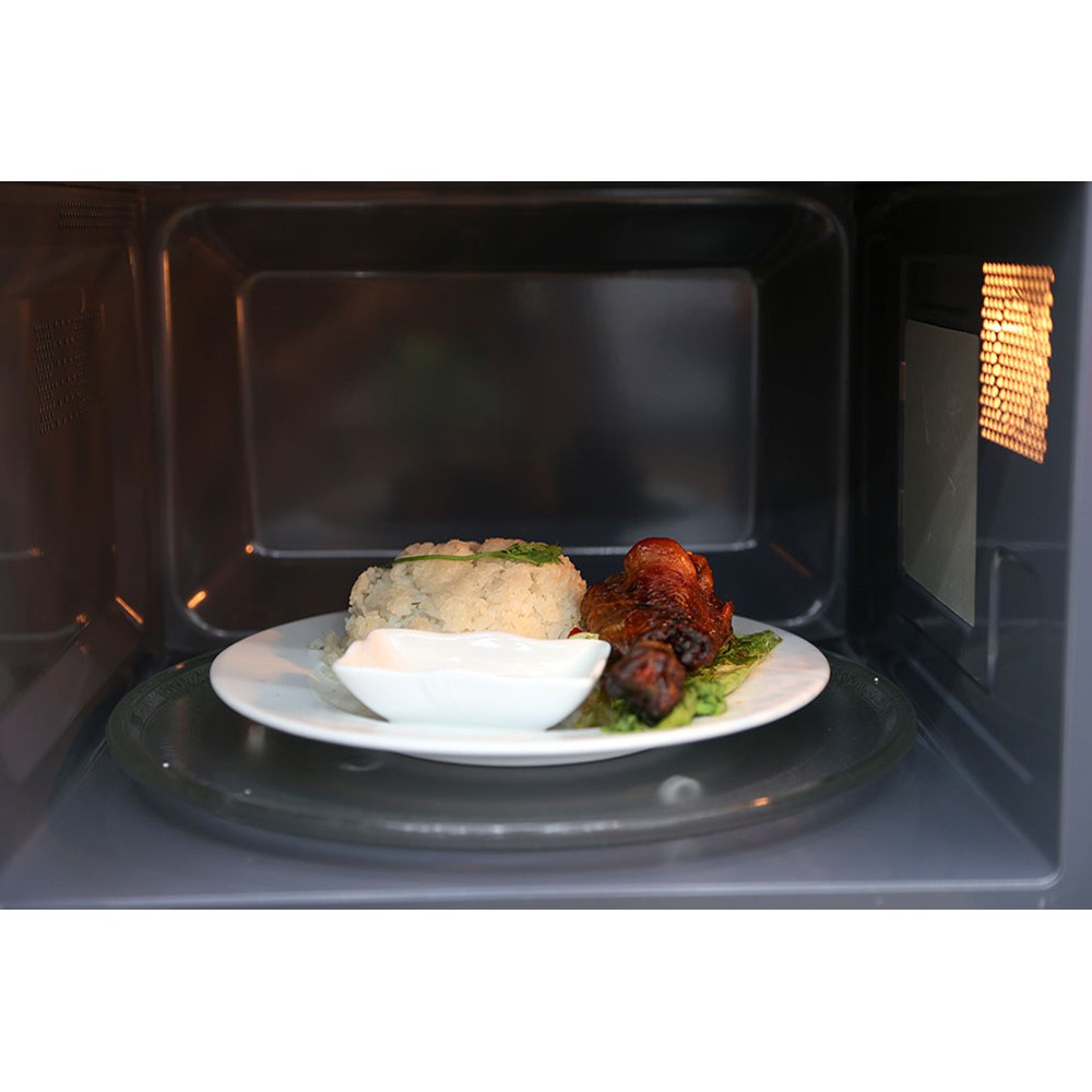 Lò hoạt động với cơ chế hoàn toàn tự động, bạn chỉ cần cho thức ăn vào lò, chọn chế độ nấu phù hợp, trong ít phút là có ngay bữa ăn nóng sốt, ngon miệng. Trong khoang lò được trang bị vòng xoay và đĩa thủy tinh, thức ăn đặt trên đĩa thủy tinh sẽ được xoay vòng tròn, nhằm làm chín nhanh và đều thức ăn.