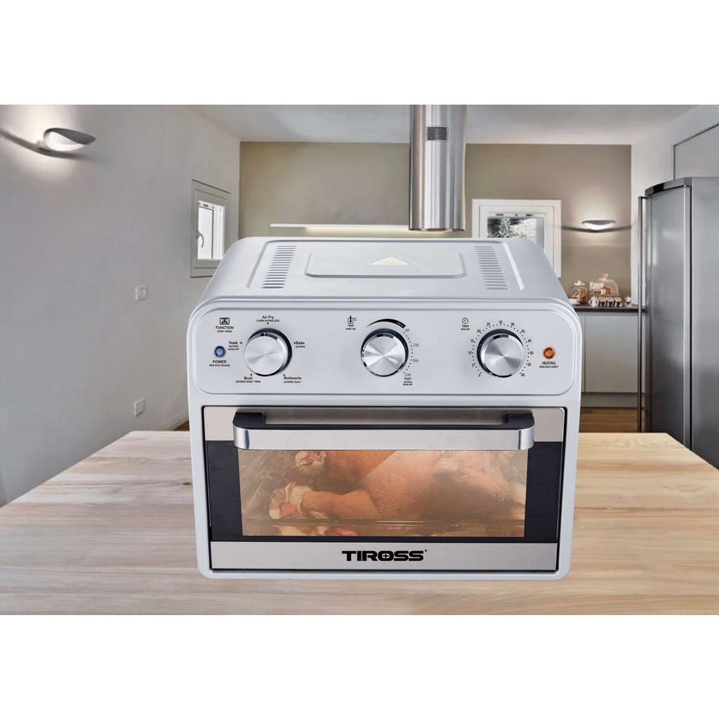 ☛ Lò nướng không khí đa năng TIROSS có thiết kế nhỏ gọn, kiểu dáng hiện đại sang trọng, góp phần tô điểm không gian sử dụng.