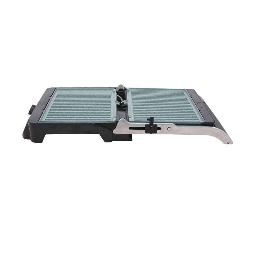 Mặt bếp tráng lớp chống dính bằng công nghệ stone marble, khi nướng thực phẩm không bị dính và dễ dàng vệ sinh sản phẩm, có thể dùng miếng vải mềm để vệ sinh bếp nướng.