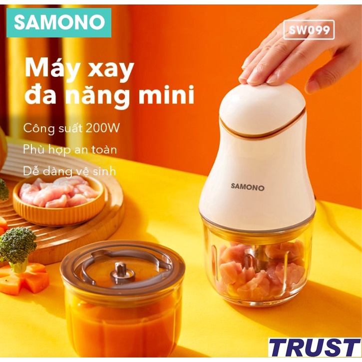 MÁY XAY THỰC PHẨM MINI ĐA NĂNG SAMONO SW099 XAY THỊT TỎI ỚT CÔNG SUẤT 200W - BẢO HÀNH 12 THÁNGVới SAMONO #SW099, bạn có thể xay sinh tố, xay/băm nhuyễn các loại gia vị thảo mộc, đánh kem, đánh trứng, v.v…..Đặc biệt, mẹ nào nhà có còn nhỏ, đang trong quá trình ăn dặm, thì phiên bản mini này khá phù hợp, dung tích 300ml, vừa đủ để đảm bảo các bé lúc nào cũng có thức ăn nóng sốt.