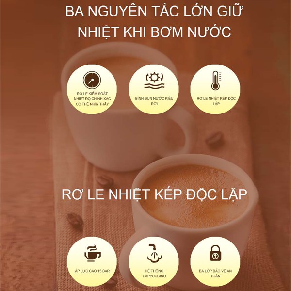 Máy thiết kế với 2 đầu chảy cà phê riêng biệt, cho phép pha 2 tách cà phê cùng lúc. Trên đỉnh máy có khay làm ấm tách cà phê sẽ giữ cho cốc cà phê của bạn được nóng lâu hơn.